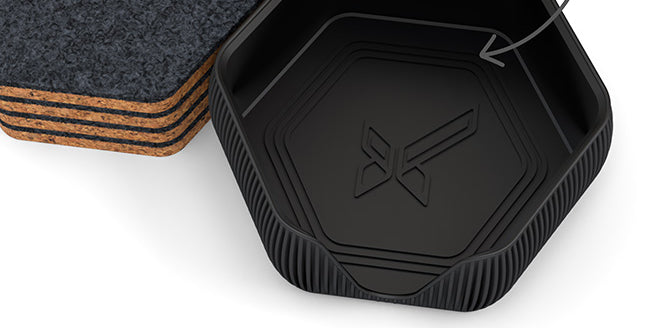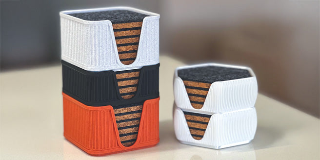 Bring modern elegance to your home with this handcrafted coaster set. Each set includes 4 high-absorbent cork and felt coasters, neatly housed in a 3D printed holder that’s as functional as it is beautiful.